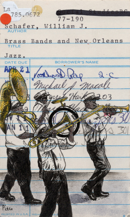Brass Bands & New Orleans Upcycled Library Card Print.