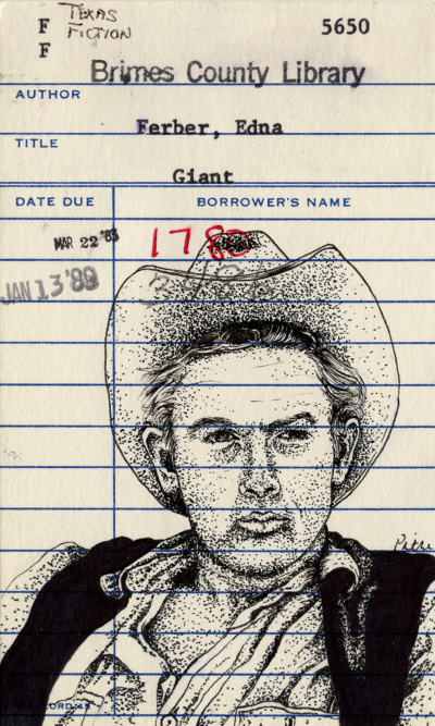 Giant by Edna Ferber original drawing on vintage found library borrower card.